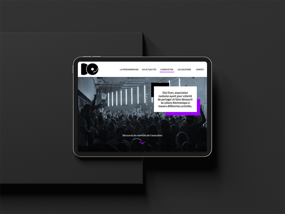 Disc'Over est une association étudiante qui a été créer pour faire des soirées "technos" dans différents lieux sur Nantes. Ce projet a été réalisé en collaboration avec une autre étudiante pendant mes études ; le brief était de réaliser le site web d'une association à but non-lucratif avec Wordpress.