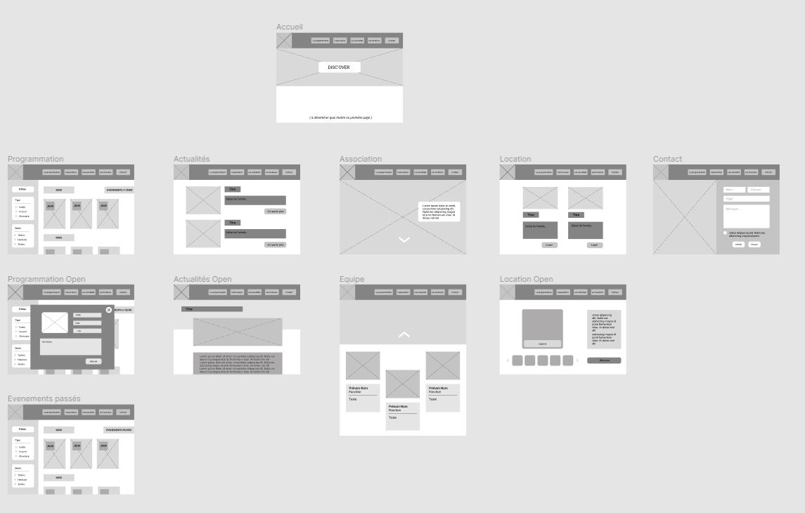 L'association étant plutôt petite et peu de budget, l'équipe nous a donné uniquement le logo Disc'Over. Nous avons donc créer toute la DA de la proposition finale que nous leur avons fait. Le projet a été fait en plusieurs étapes : personnas, zonings, wireframes, maquette/UI et pour terminer le développement via Wordpress.